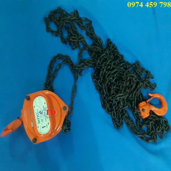 Palang xích tay hiệu Nitto có loại 1 tấn, 2 tấn, 3 tấn, 5 tấn, … Palang xích tay hiệu Nitto có loại chiều cao nâng 3 mét, 5 mét là kích thước chuẩn, tuy nhiên cũng có thể thay xích theo yêu cầu.